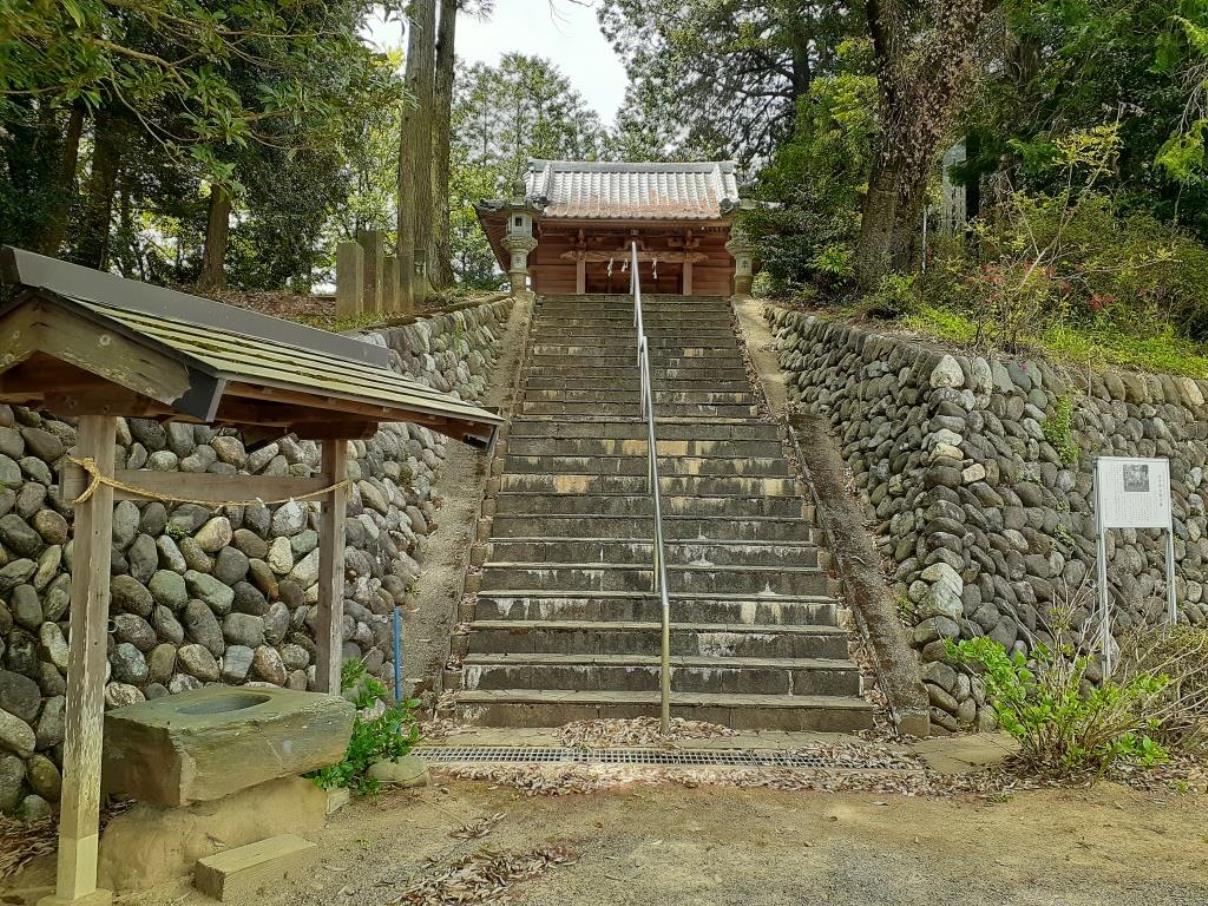 社は南向きで、岩殿丘陵地面に鎮座しているが、社の南方正面は、長閑な鳩川の支谷沿いに水田が開ける農業地域である。