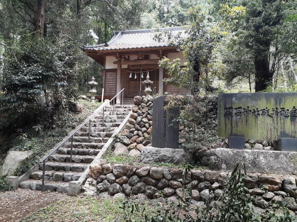 社の東側に隣接して「大橋集会所兼黒石神社社務所」があるが、そこの駐車スペースには長いロープが敷かれていていたので、適度に広い路地に駐車し、ここでも急ぎ参拝を行った。