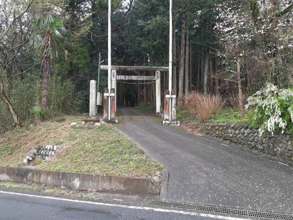 イチイガシの左側脇に通っている道は社に通じる参道にもなっているようだ(写真左・右)。理由は分からないが、この社には鳥居がなく、社号標も見当たらなかった。