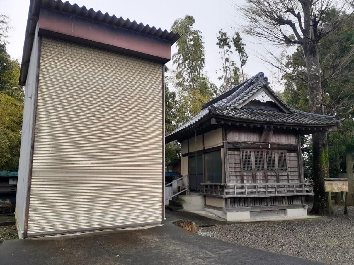 今より約半世紀前、社が人家の中心付近に遷座される、との噂が広まり、それが現実となり、現在の地に遷座されたもので、永年の風雪により本殿、拝殿の老朽化が著しく此処に至り改築する事に成りました。