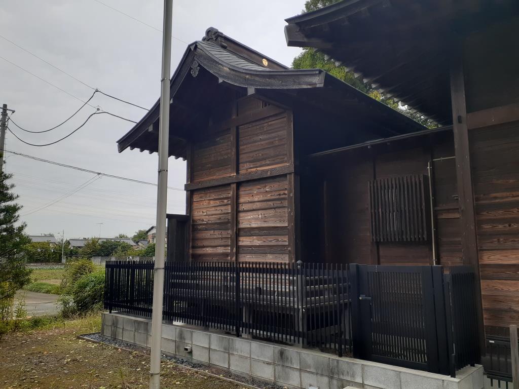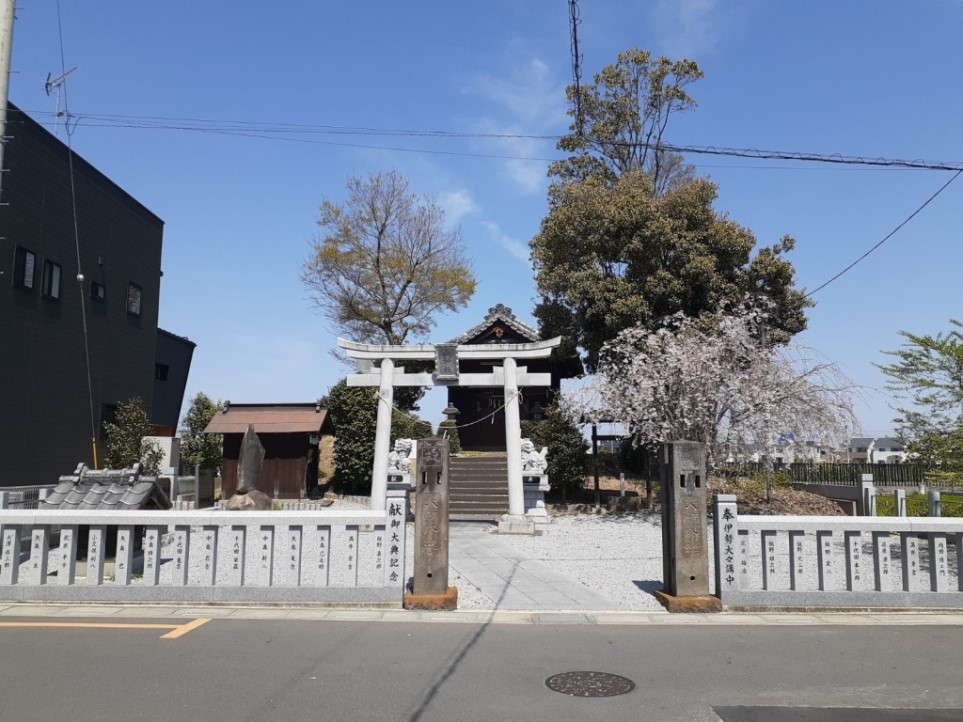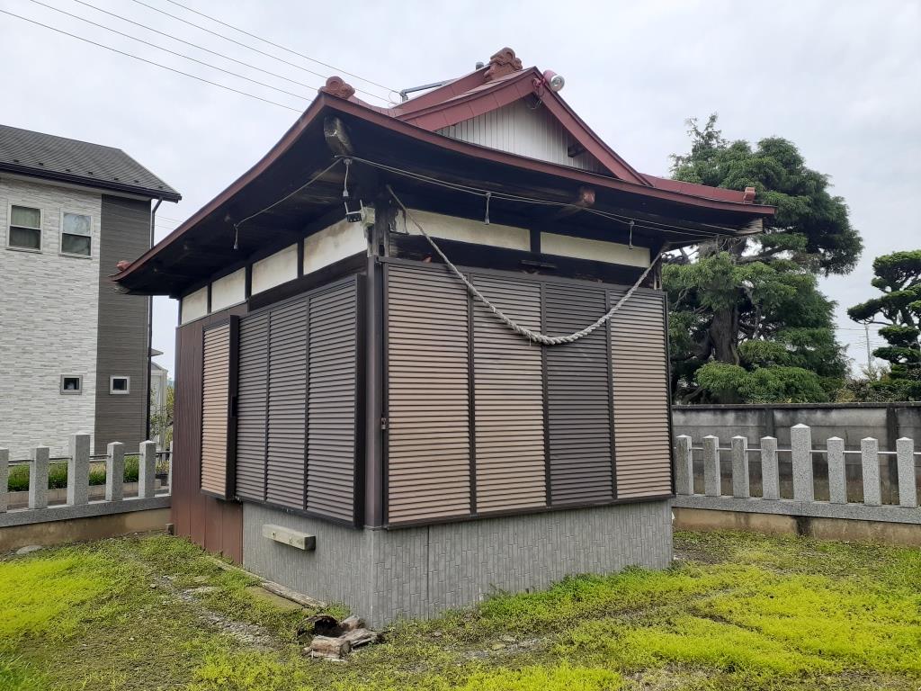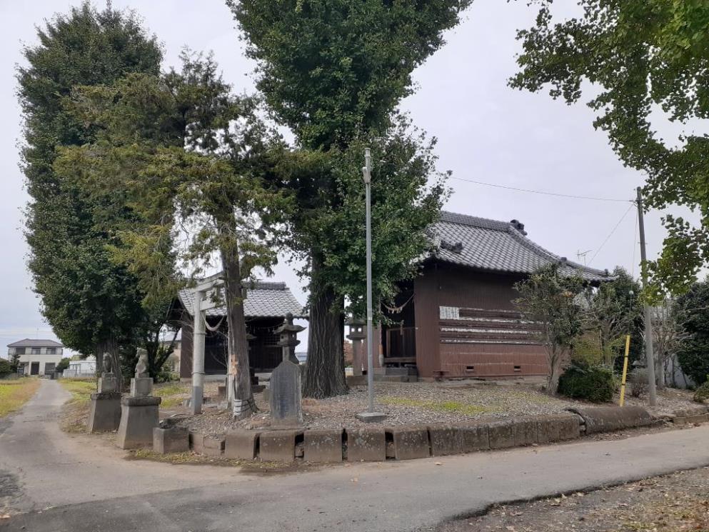 田畑風景が一帯に広がる中にポツンと鎮座する静かな社。社殿は南向きで、見沼代用水に対して向けられているような配置。境内東側に駐車可能なスペースがあり、そこに停めてから参拝を開始する。