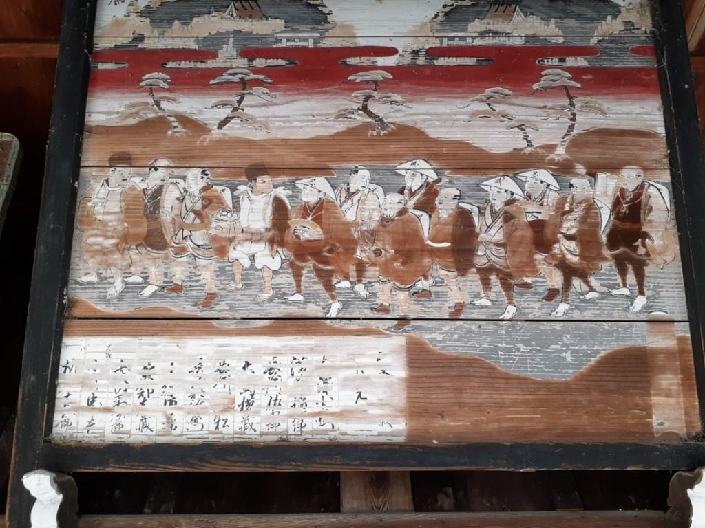 拝殿には奉納された額が飾られている。真ん中の奉納額の絵が綺麗で描写が趣がある。
