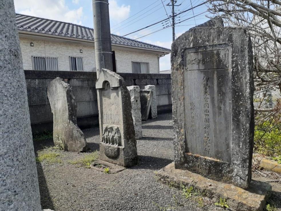 鳥居の右側に祀られている愛宕社・弁天社     鳥居の左側には、伊勢参宮記念碑や