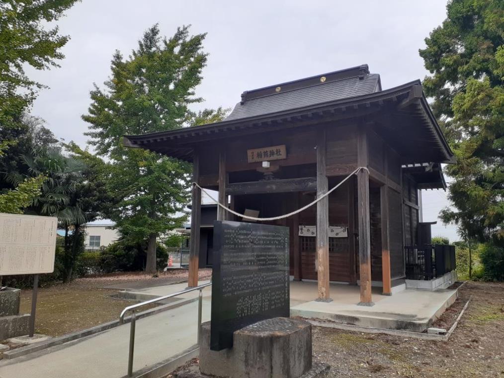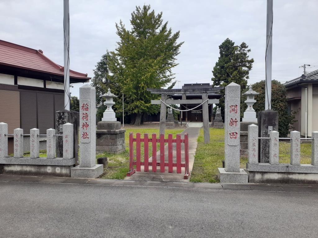 この地域内には「花久の里」という観光スポットがあるのだが、「川里中央通り」からこの施設に向かう入口には看板が設置されていて、その反対側の道を進むと、その突当たり地点に関新田稲荷神社が見えてくる。