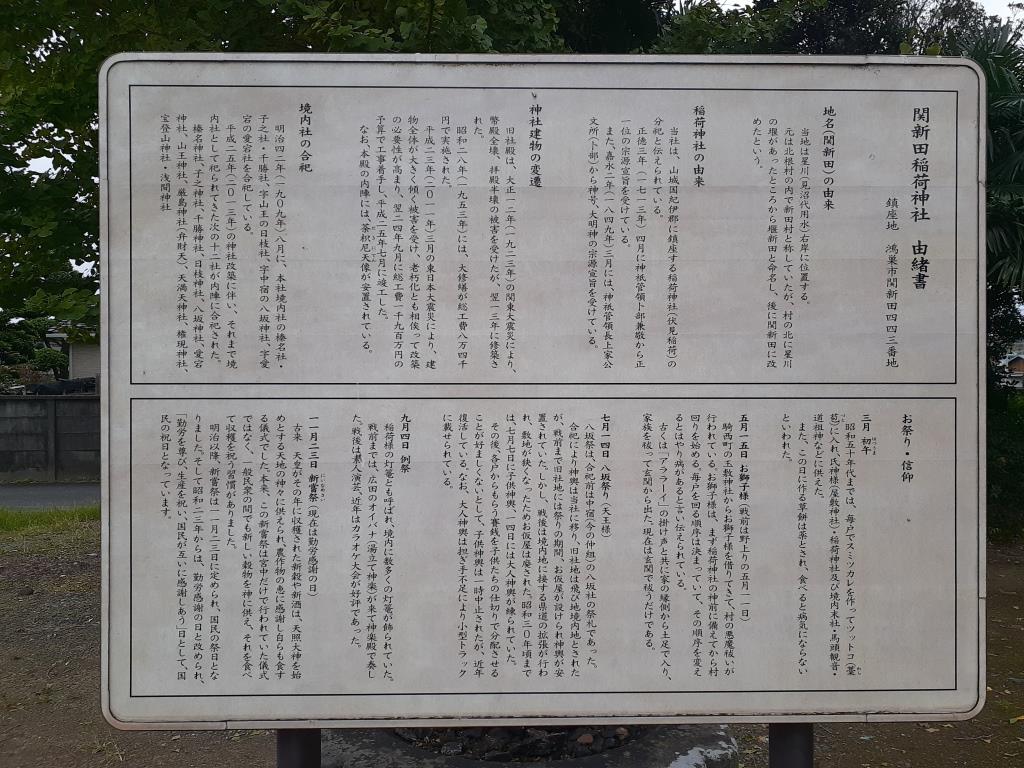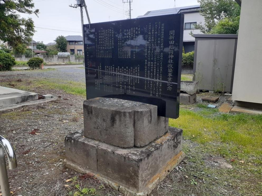 関新田稲荷神社 由緒書」の案内板        「関新田稲荷神社改築記念碑」