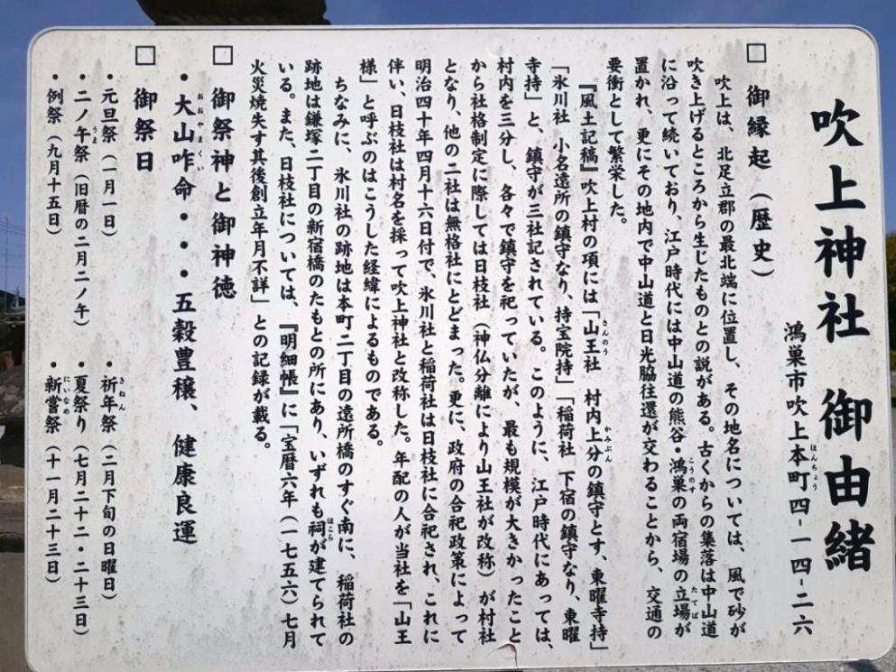 鳥居の左側には「吹上神社 御由緒」の案内板もあり。