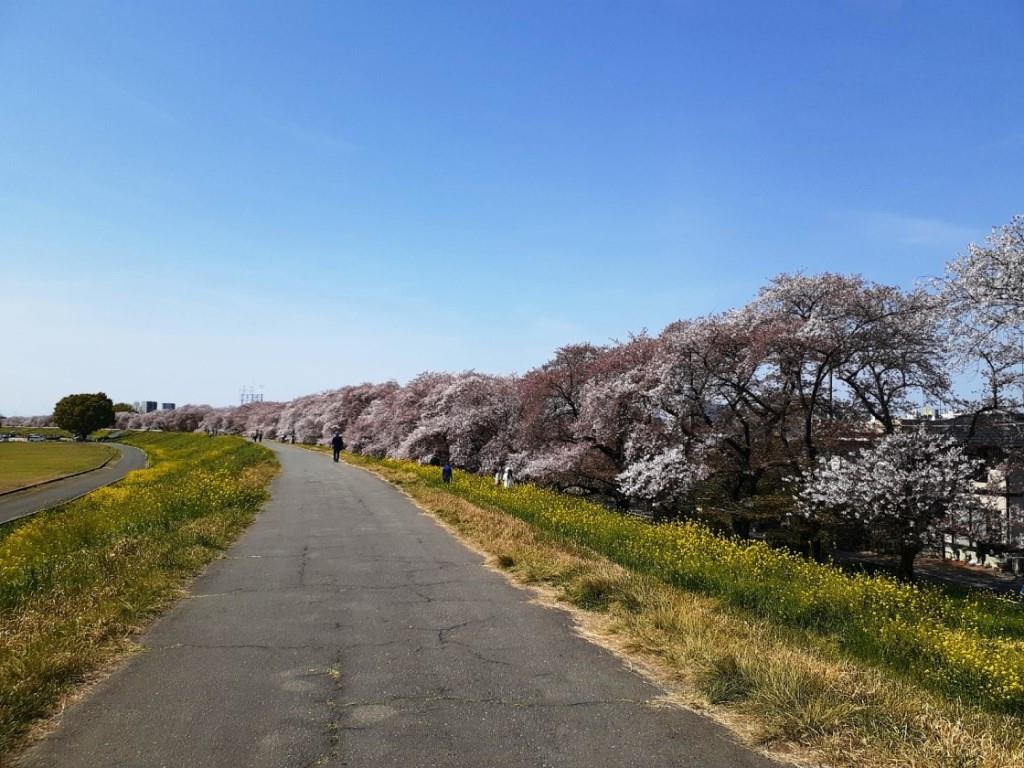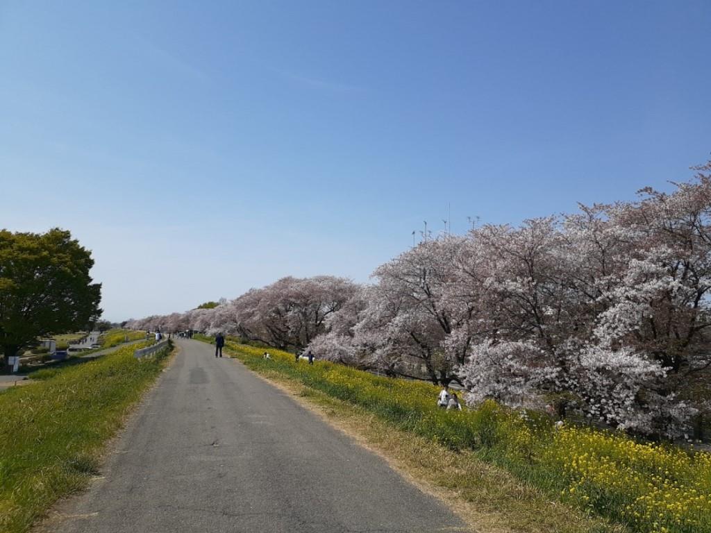 自宅への帰路途中、熊谷堤の桜も見物した。こちらも満開で、お客も平日にも関わらず大勢いた。