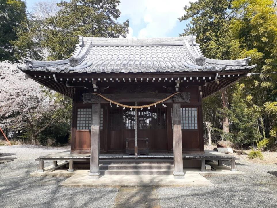 拝殿を中央にして左側には社務所、右側には神輿殿が配置されている。