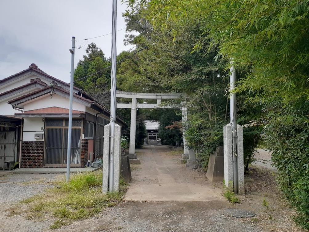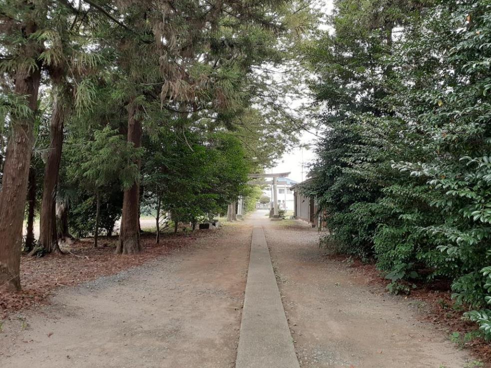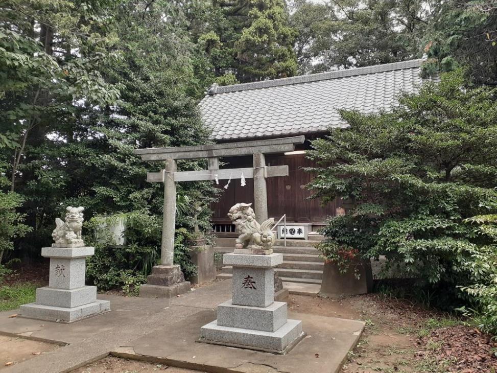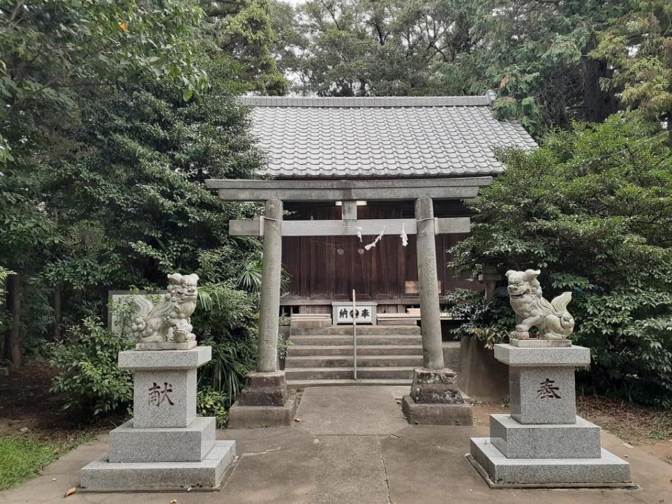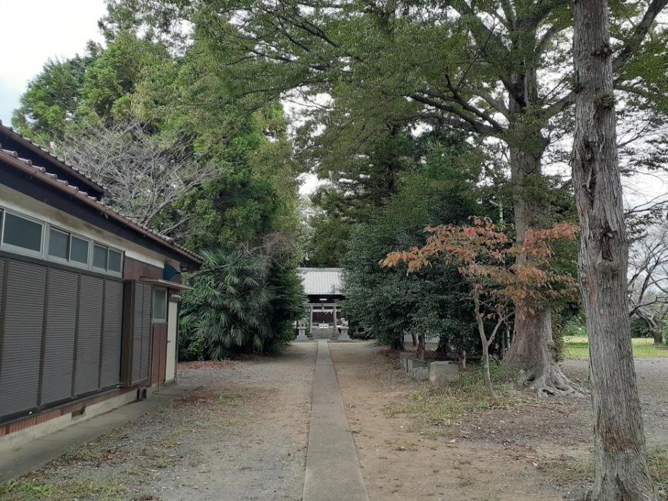 旧川里村境地域に鎮座する社である。広田鷺栖神社から埼玉県道313号北根菖蒲線を東行し、1㎞程先にある丁字路を左折する。通称「川里中央通り」と呼ばれるこの道の東側には鴻巣市の花と音楽の館「花久の里」というNPO法人が運営している施設があり、花・物販の事業、食の事業、音楽・芸術の事業や年間のイベントを実施しており、季節別に彩られる庭園は自由に入ることができるなかなか洒落た場所だ。