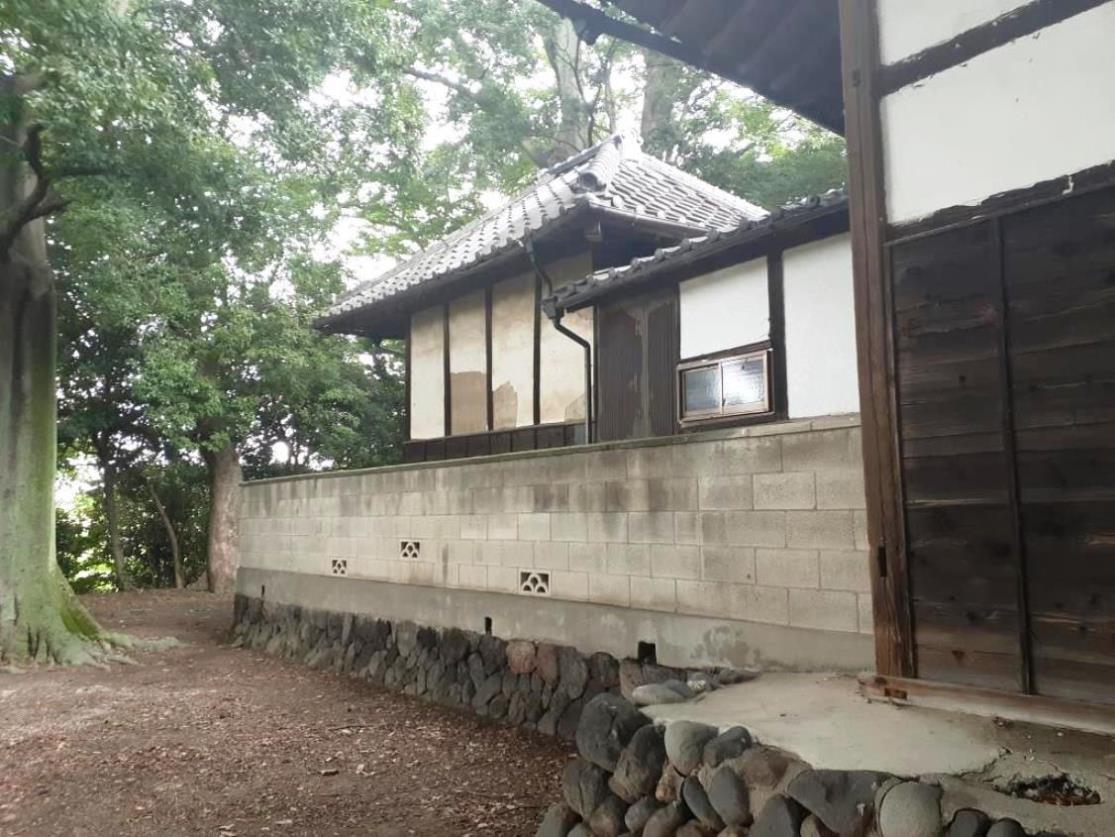 境内西側奥にある鳥居の笠木・島木部 社殿右側にある神興庫