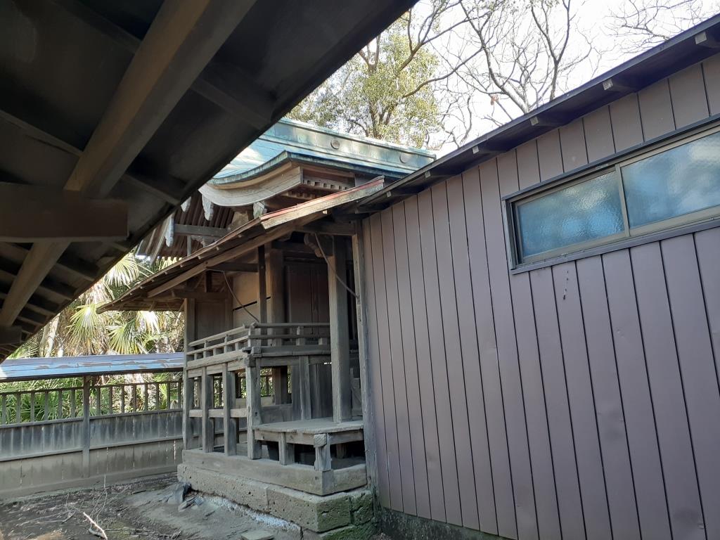 拝殿に通じる石段の右側に祀られている日枝神社 日枝神社の右隣にある神興庫