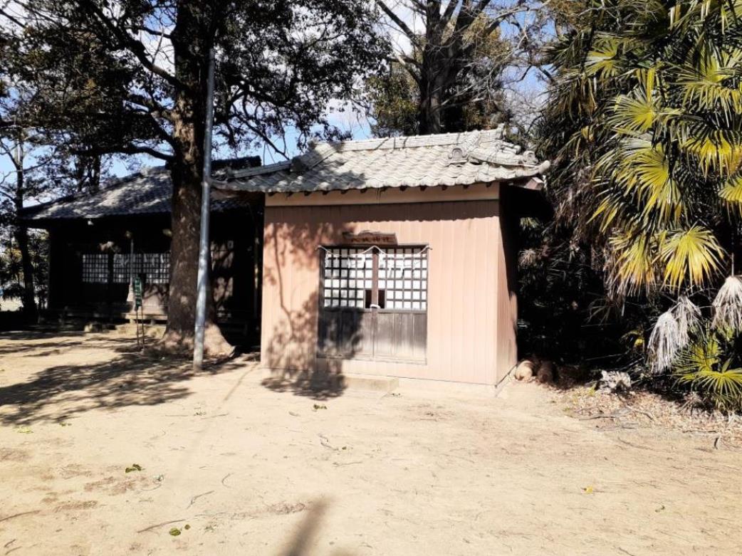 拝殿上部に掲げてある扁額 境内にある社務所であろうか。