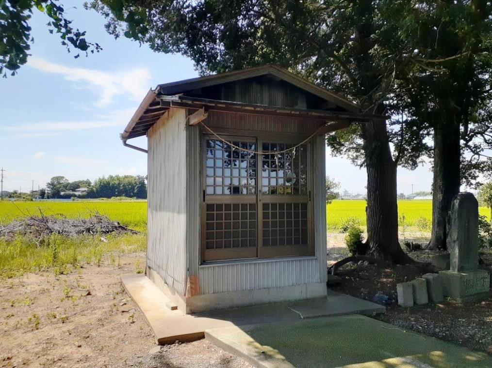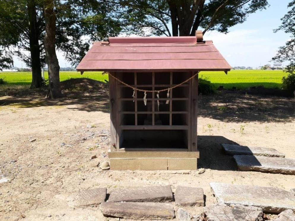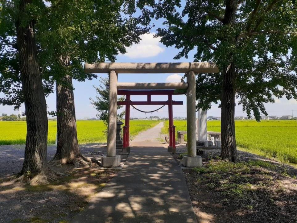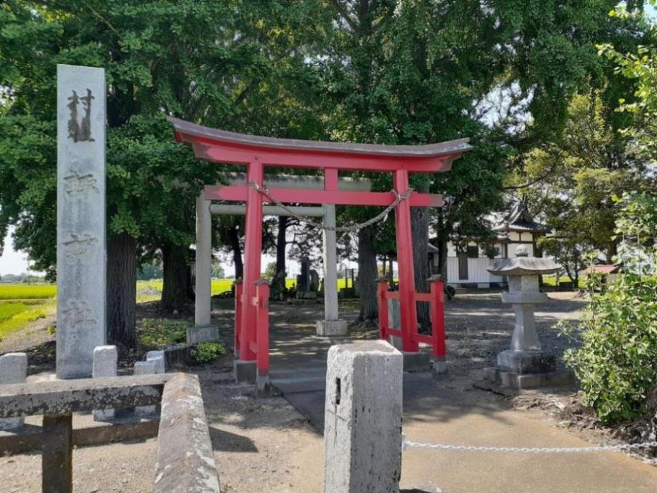 明治四十年の頃、字元屋敷に在りし厳島神社、並びに字下耕地鎮座の八坂社を合祀し、爾来、里人いよいよ四季の祭りに努め来たりしが、平成七年五月一日の深更、不慮の火災起こりて社殿宝物等悉く烏有に帰す。村人の嘆き悲しみは極まれり。