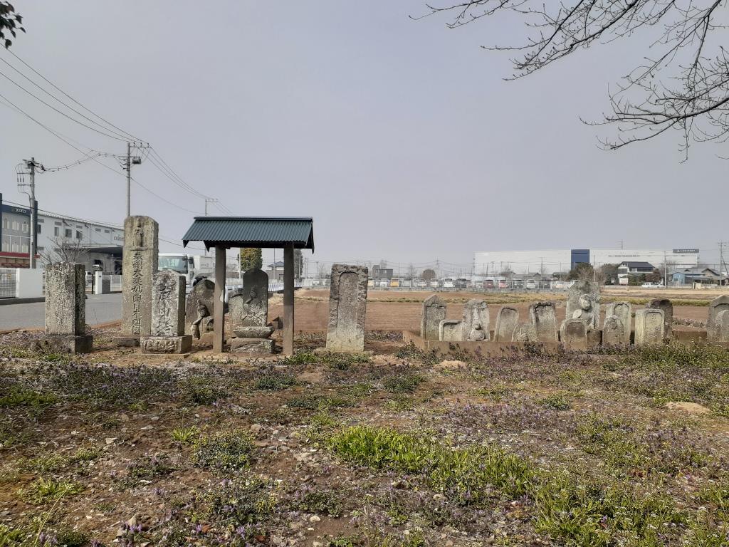 幾多の庚申塚を含む石碑や供養塔等が並んである。(写真左・右)