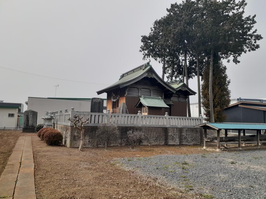 当地は利根川中流域右岸に位置し、中央を島川が流れる。新井新田の地名の由来は、近世初期に北大桑村新井の住民が開発したことによるという。当社の創立も村の開発にかかわると思われる。