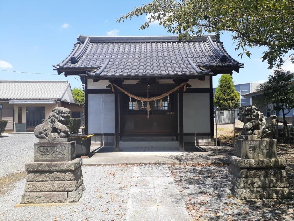 なお『明細帳』による祭神は大日孁貴神で、内陣には三本の幣束と一体の神像(石造の座像)とが納められている。明治四〇年八月八日に字新道下の神明社と字中の稲荷神社が合併を許可されているが、実際には合祀は行われなかった模様である。