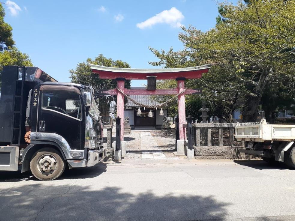 社の西側に隣接する日出安集会所には広い駐車スペースあり。