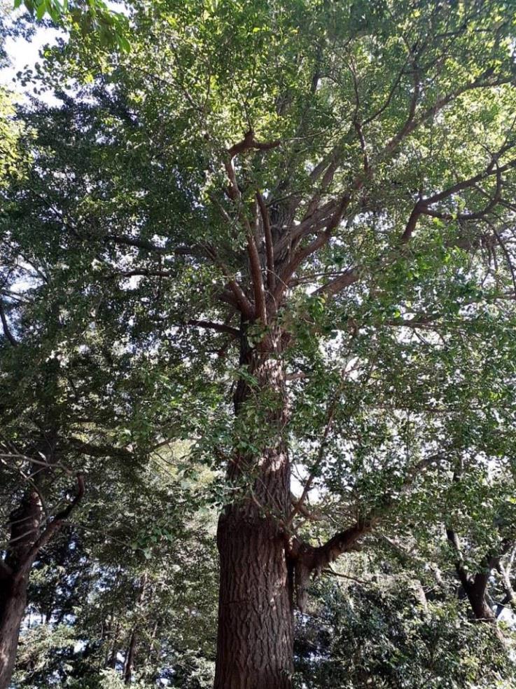 北本市の保護樹林であるイチョウの大木(写真左・右)