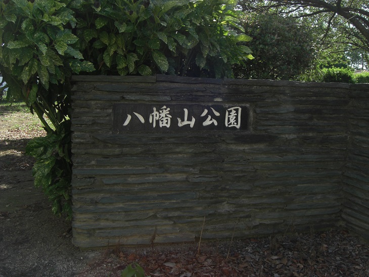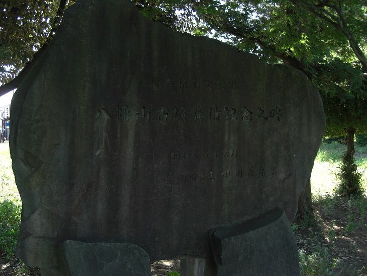 八幡山古墳のある「八幡山公園」正面入口 石室の手前左側にある「八幡山古墳整備記念之碑」
