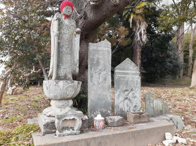 万光寺氷川神社の東側に隣接してある地蔵像と、板碑群(写真左、右)。