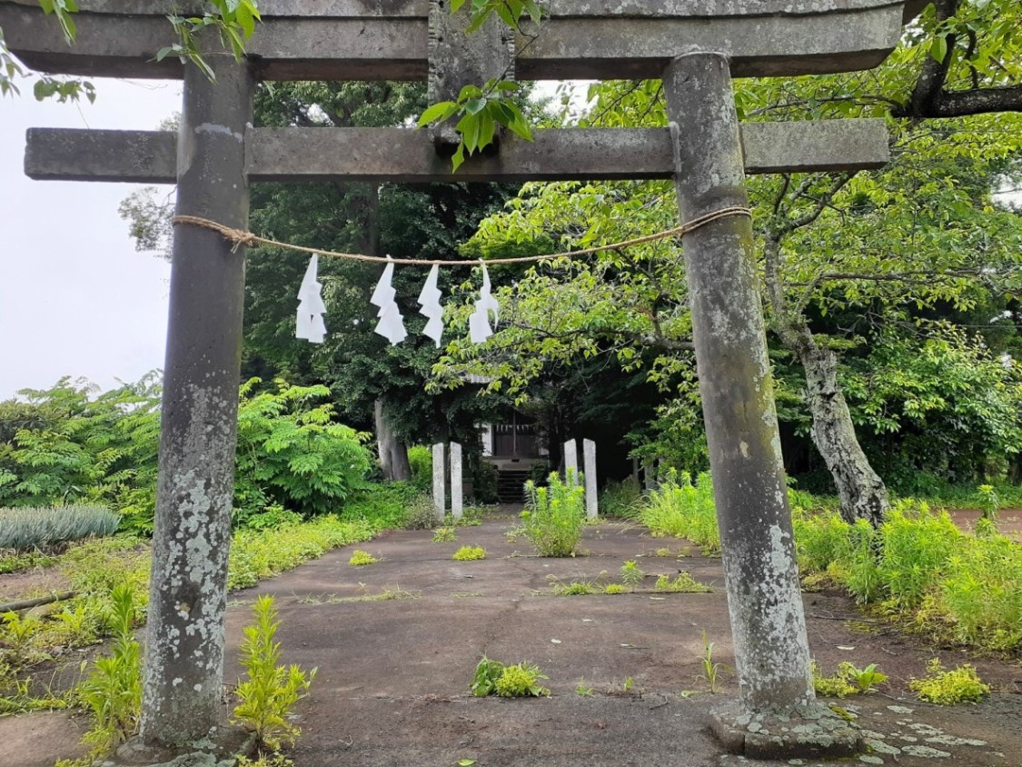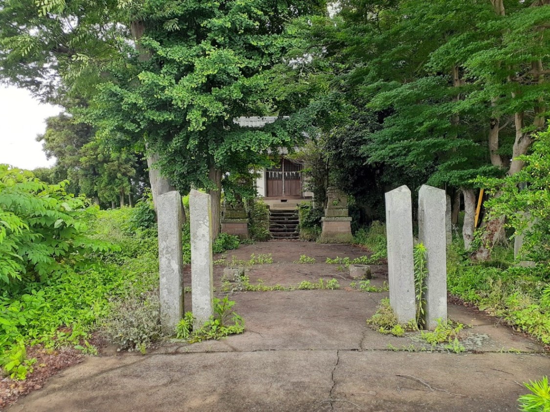 当社は、松山城落城後に当地に土着した関根兵部左衛門(慶長2年1597年没)が慶長2年(1597)に勧請、下砂村(現在の上下砂・古名・丸貫)の鎮守として崇敬されていたというが、見た目社も小規模で、境内周辺もこの時期でかなり草が生い茂げっていた為、やや寂れた印象はぬぐえない。