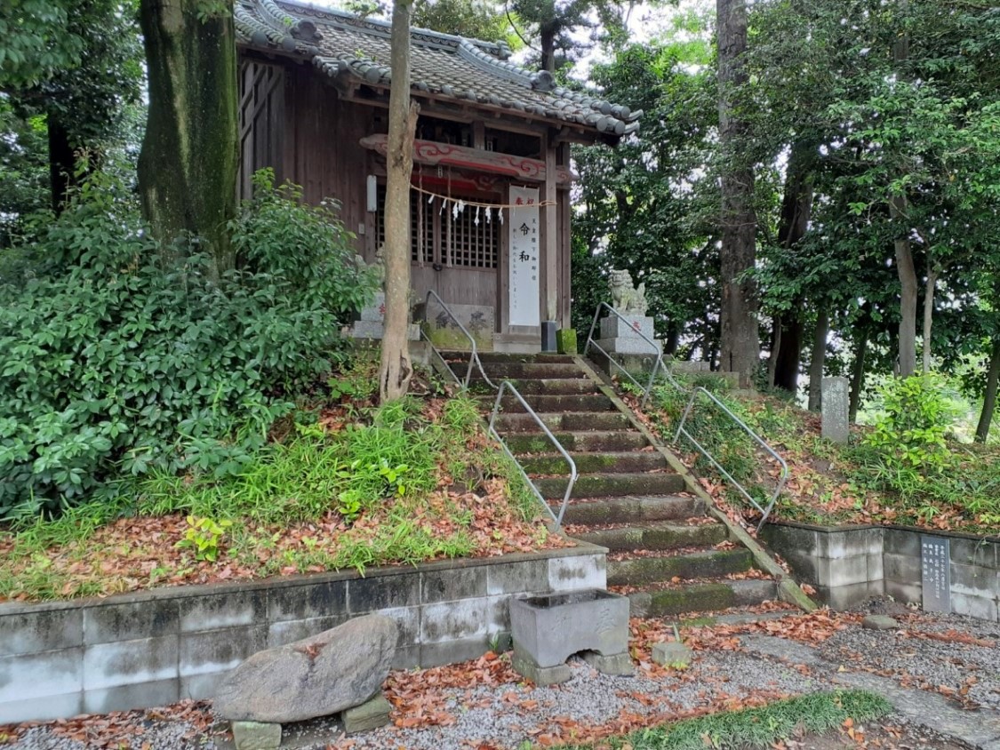 社殿は東向き。高台の上に鎮座している。盛り土か、古墳かは資料不足で不明。