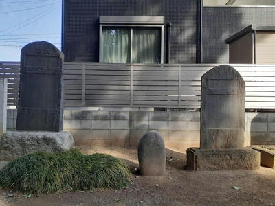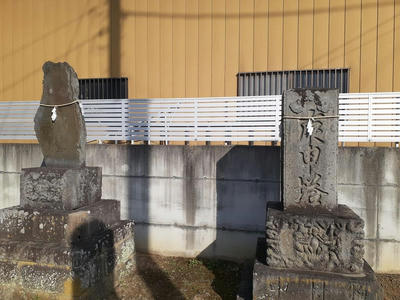参道を挟んで阿夫利神社・天満宮の対側にある伊勢参宮記念碑二基。その間には力石あり。