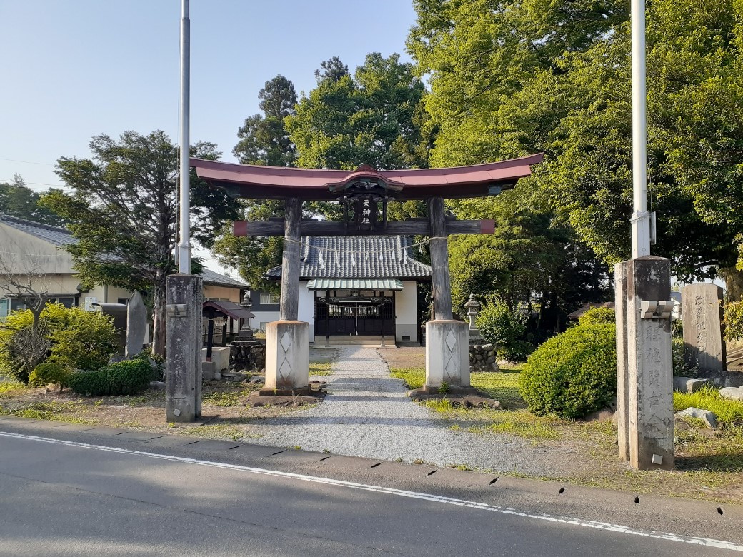 社の東側を右回りに降りて路地で一般道と合流したところには、八坂神社と馬頭尊等の石仏群が並んで祀られている。