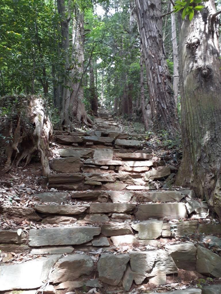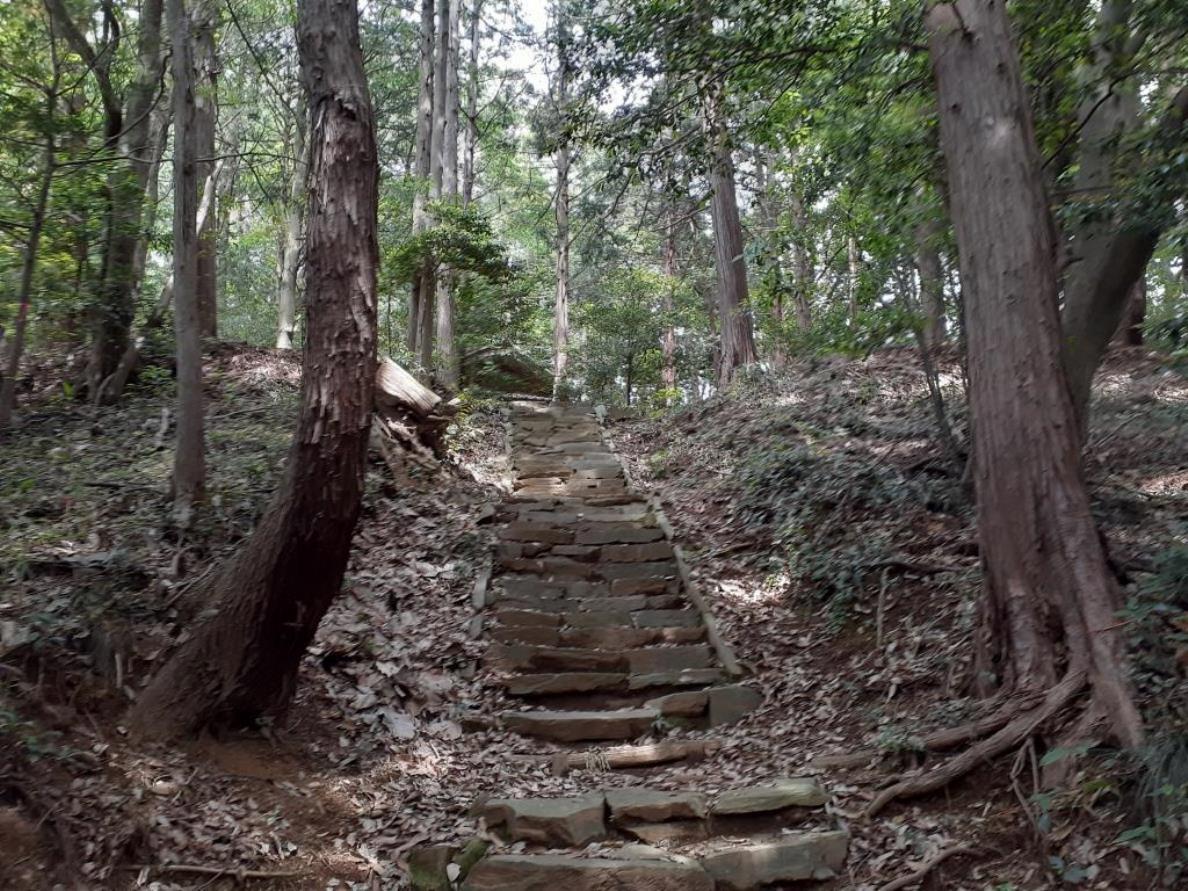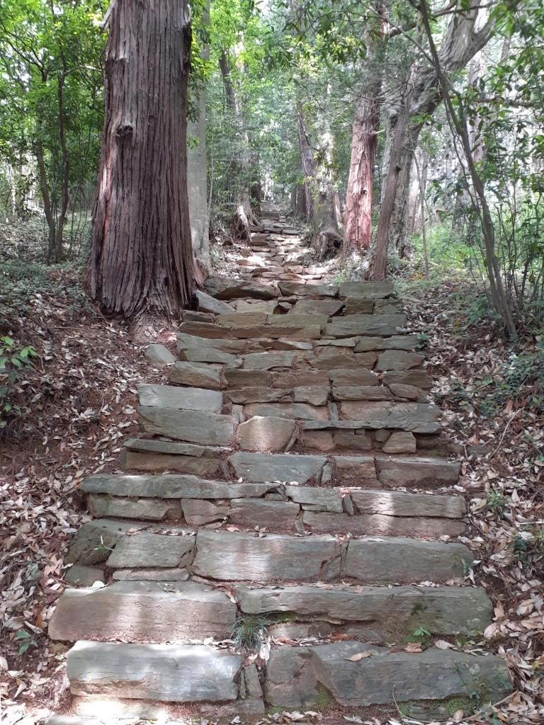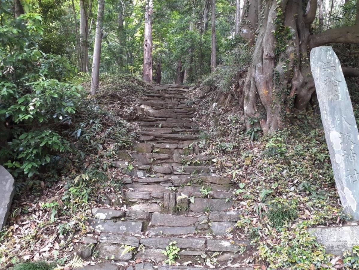 社への石段がかなり急勾配で、所々苔むしているので気をつけて登る。