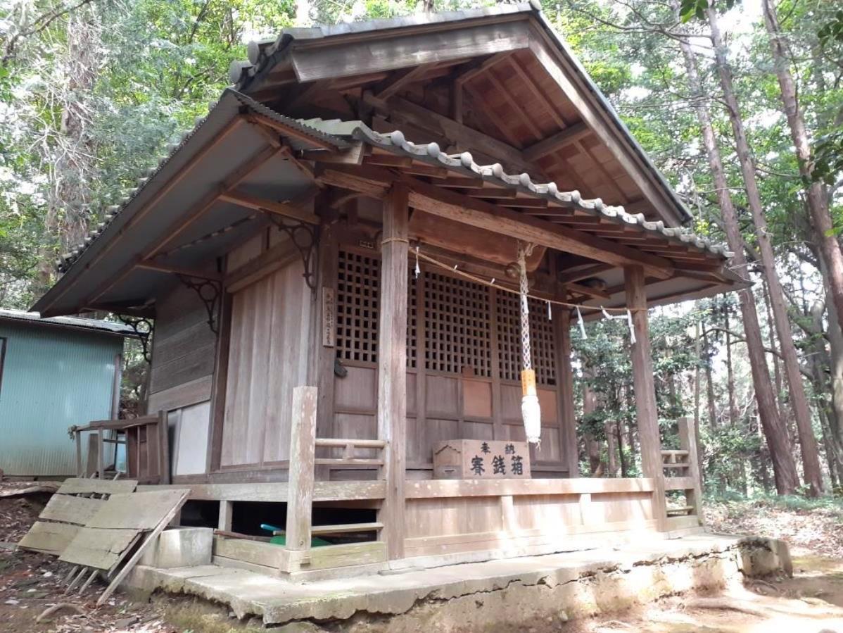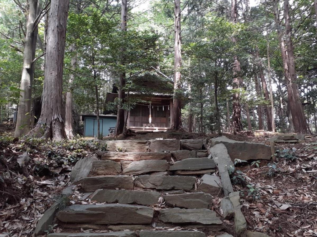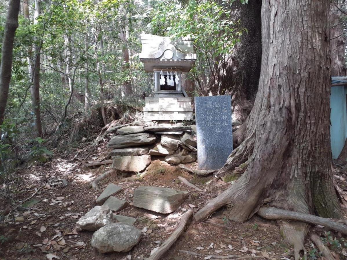 石段を登り終えたすぐ左手にある稲荷社の石祠 稲荷社の反対側に祀られている氏神