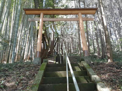 飯田神社 一の鳥居 一の鳥居から石段を登ると二の鳥居が見える。
