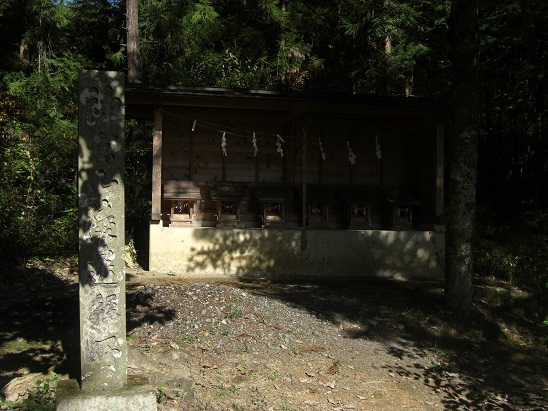 社殿の左側奥には豊守稲荷神社があり(写真左)、その更に奥には境内社がまとめられて祀られている(同右)。左から水速女神社、天満天神社、古峰神社、三峯神社、八幡神社、大山祇神社の六社。