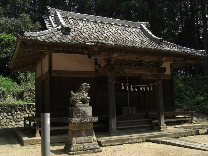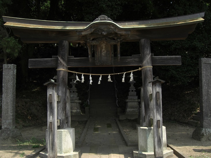 勧請(かんじょう)人皇四十七代聖武天皇ノ御宇ト申ス、其後承平)年中(931-938)経基公関東征討ノ節此ニ祈願シ遂ニ八ヶ所ニ是ヲ祭ルト云フ。明治四年(1871)中村社(そんしゃ)届濟。