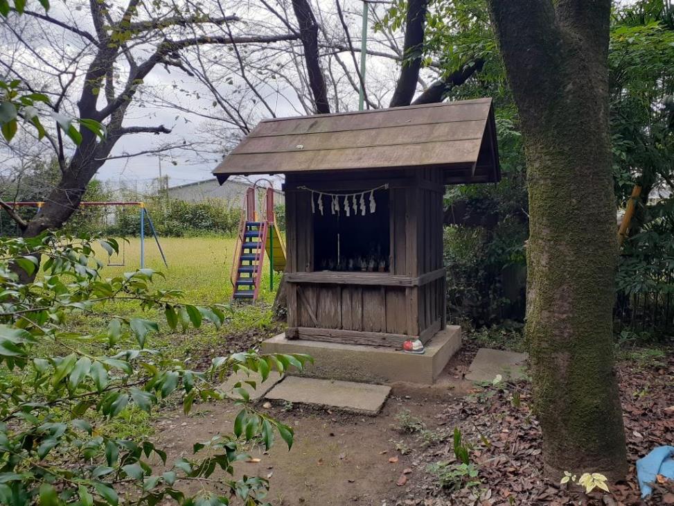 又この塚は古墳と云う方が多いのですが、発堀した記録もなく確定出来ません、ここのすぐ南東五十米位の所に熊野神社を祀った塚がありました。その跡から墳輪、直刀、土器が出ていますし古谷上蔵根二一五からも埴輪、土器が出て居り、県内行田市の古墳とほぼ同年代(六世紀末か、七世紀始め)のもので同じ水田地帯で条件もよく似ていますが何とも云えません。(以下略)