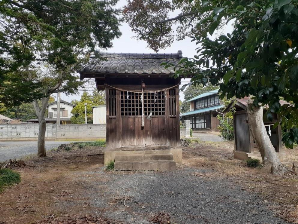 社殿の右隣に祀られている天神社 社殿の東側には覆屋があり、左から