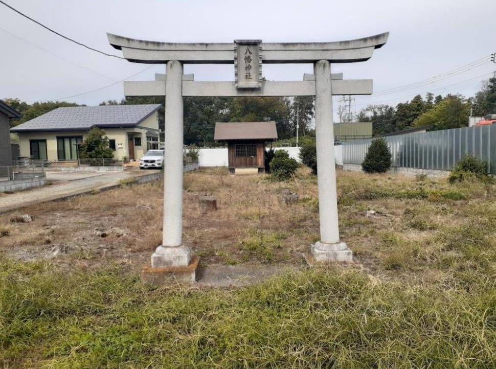 当社は日高団地に面した雑木林の中にあり、本殿は一間社流造り見世棚(みせだな)で、内陣には白幣を祀り、祭神は誉田別命である。