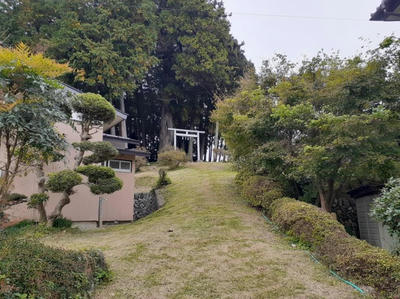 社は元宿の北側にあり、南面して地域を見下ろす位置にある。祭礼の幟が立つと、後方の日和田山の緑に幟旗の白い布地が映え、村中どこからでも神社を望むことができるという。