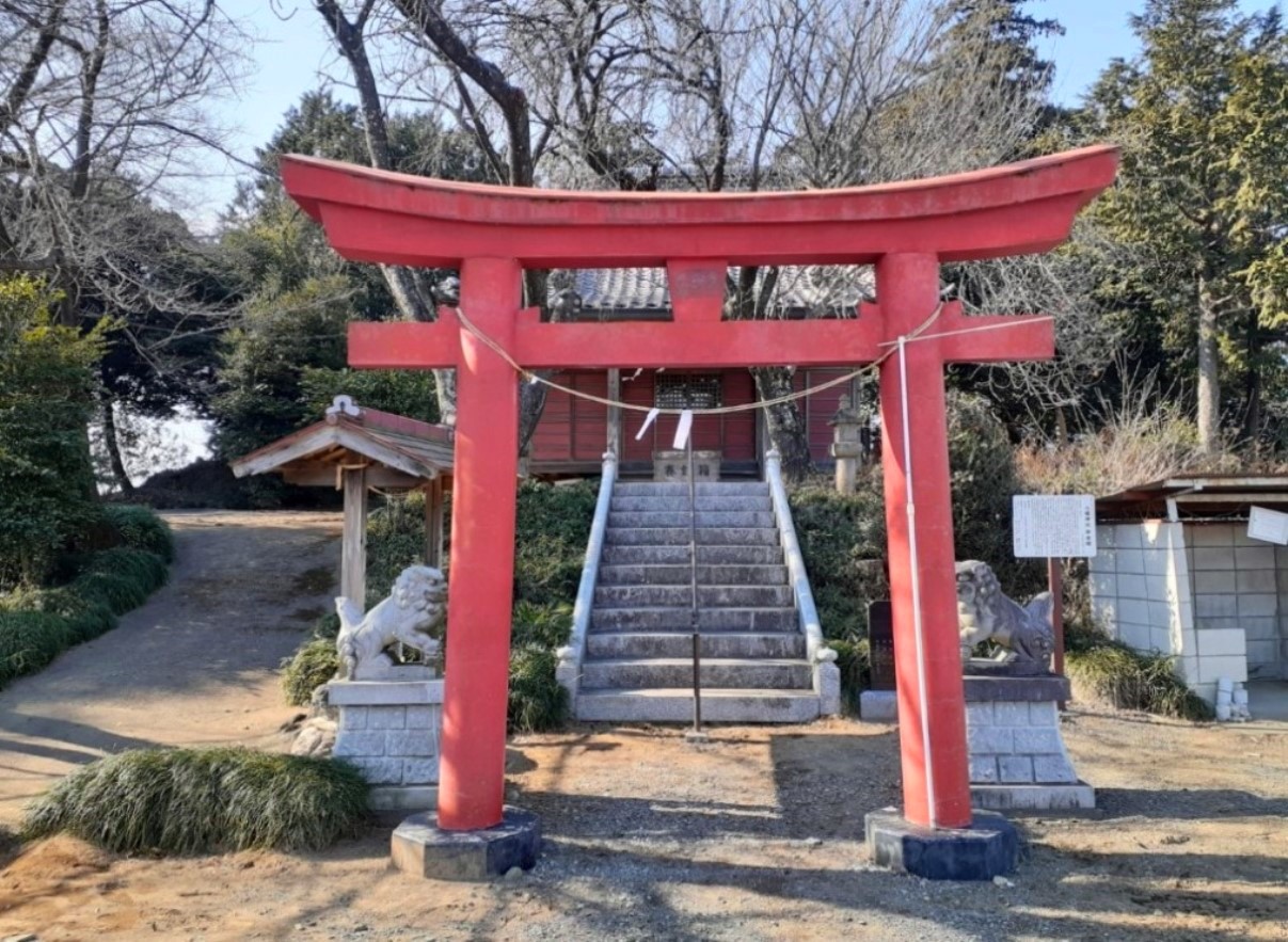 鳥居を過ぎると正面にこんもりとした社叢が見える。神社境内地の大部分が元は古墳だったのではないかと思ったが,案内板等では近郊の館である「関根氏館」に対して見渡せる小高い丘を選んで館の守護神として鎮座しているとの事だ。