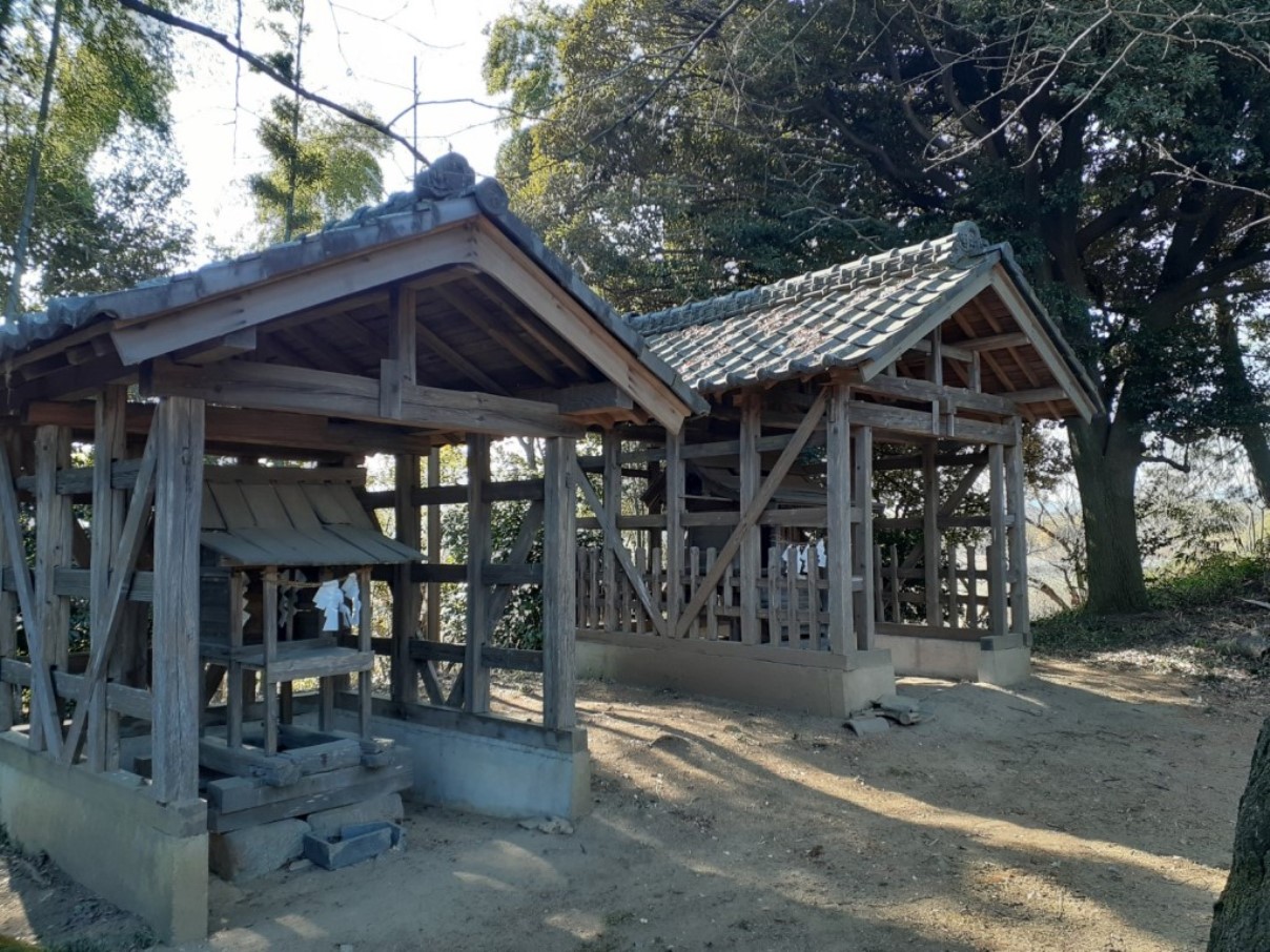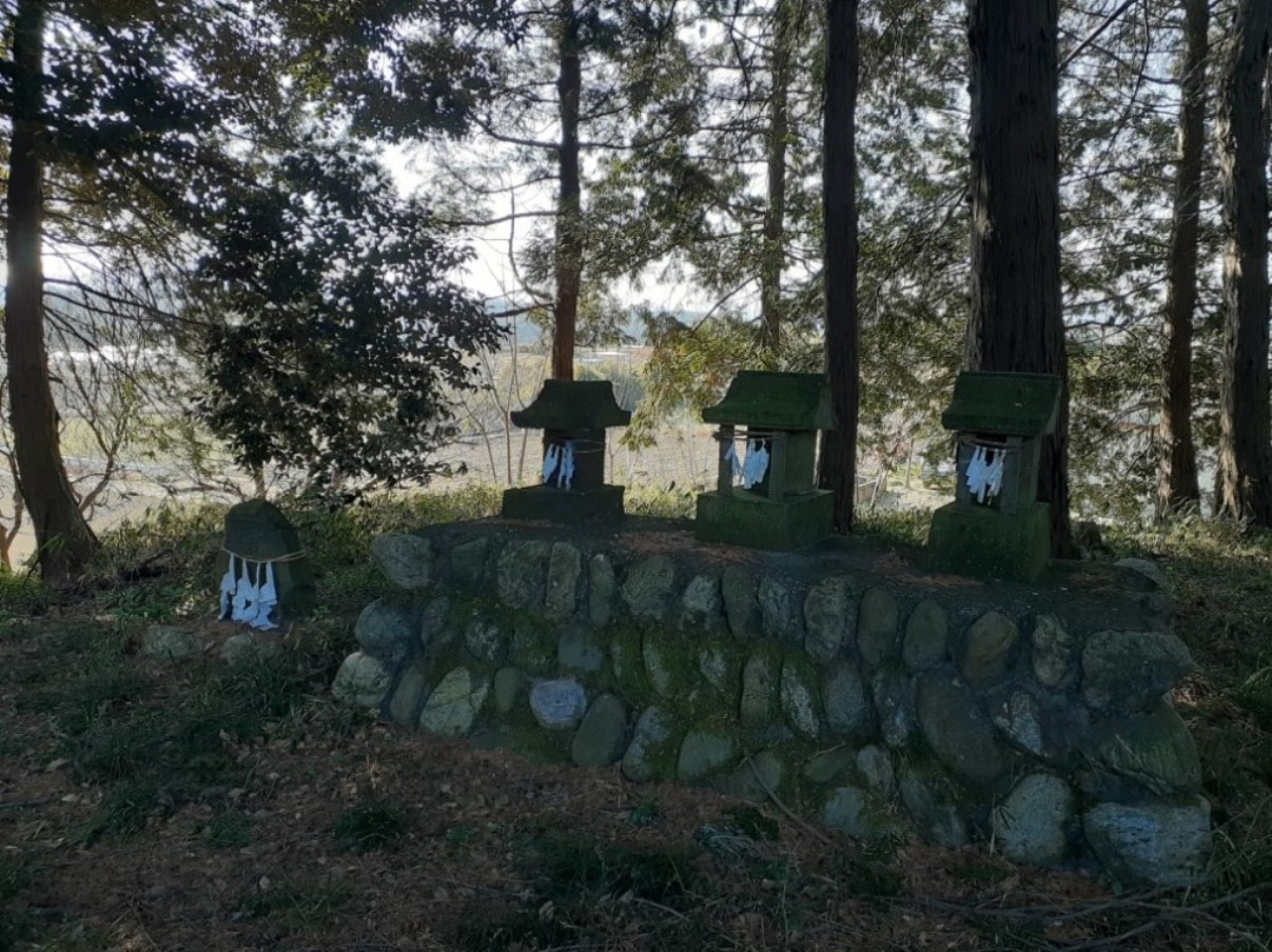 境内社 名称不明 社殿の左奥で丘の上に鎮座する末社群