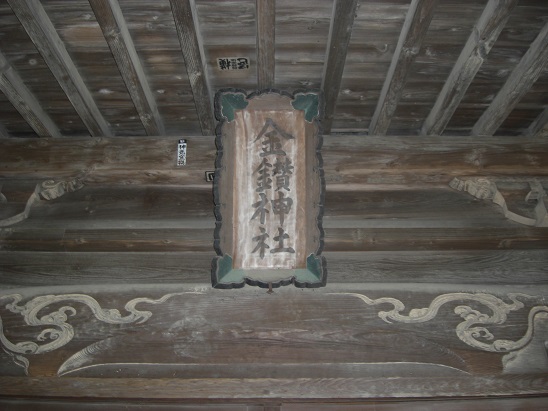 社殿の正面右側にある開闢木喰不動尊 三笠山 拝殿上部にある社号額