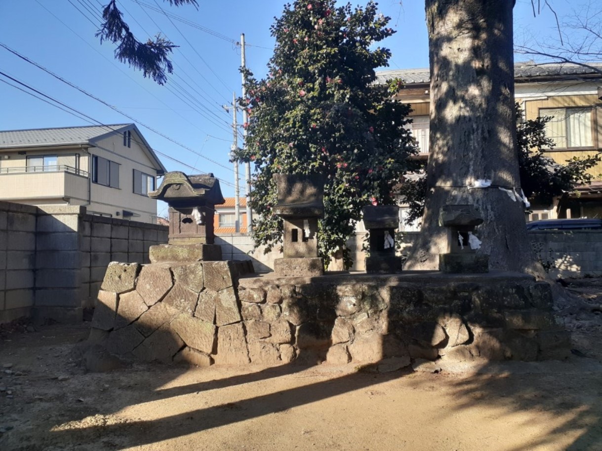 鳥居を過ぎてすぐ左側にある末社群 末社群の隣には神楽殿あり