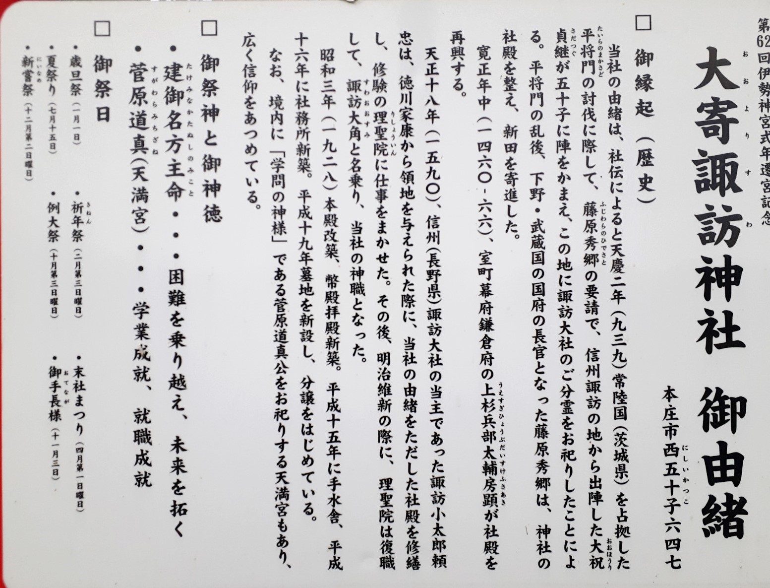 大寄諏訪神社 御由緒 本庄市西五十子六四七