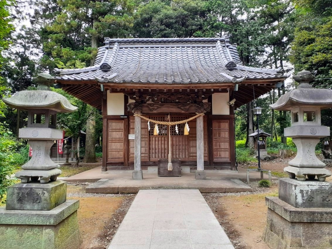 案内板に記されている上杉兵部太輔房顕が社殿を再興した寛正年中は、「享徳の乱」といわれる古河公方・足利成氏と関東管領・上杉氏一族の間で行われた戦いの最中であり、関東管領である上杉房顕が、古河公方である足利成氏との対決に際し、当地に五十子陣を構え築いた頃に必勝祈願の為、この社を再興したと考えられる。