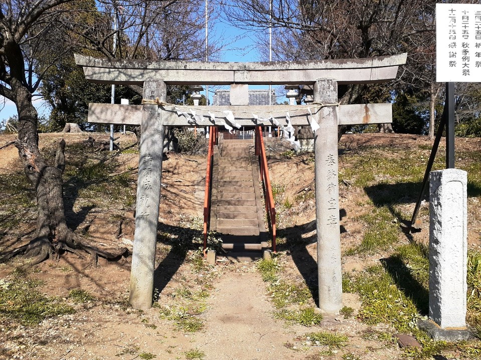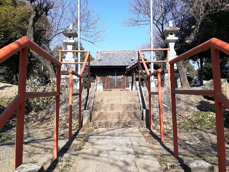 国道や県道からは低い位置に鳥居があるが、社殿はそこから小高い丘の上に建てられている。