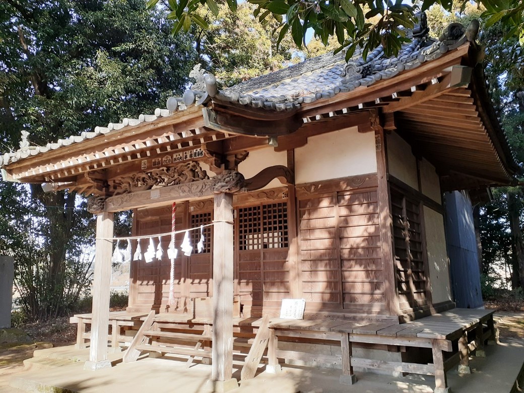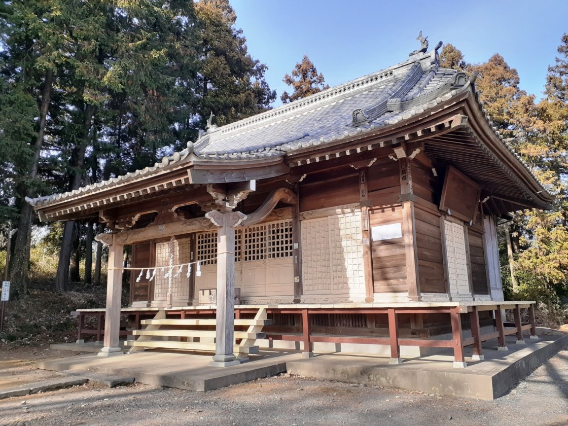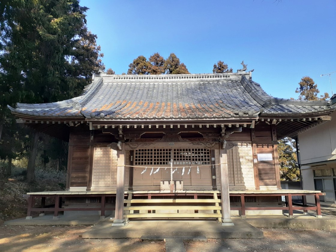 この社社殿の彫刻は安政六年四月の再勧進請のときに製作されたもので、彫工飯田仙之助(熊谷市河原明戸地域出身)が三人の弟子に技を競わせたものといわれていて、東松山市市指定文化財に指定されている。