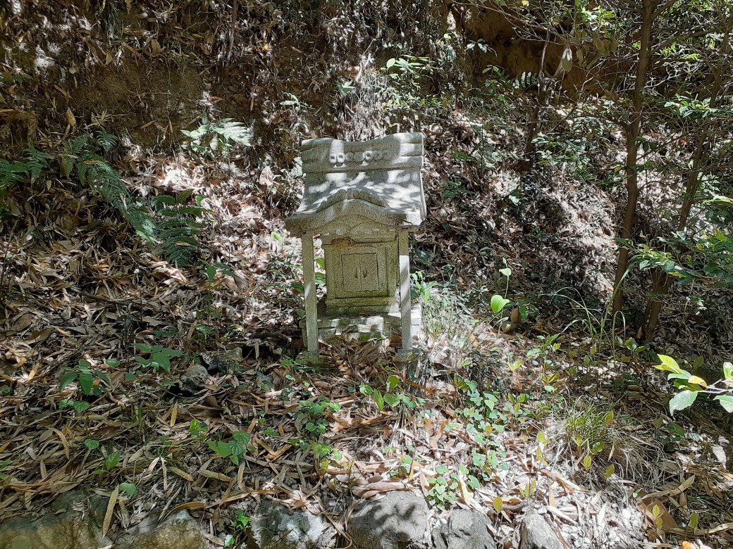 詳細不明 砂防工事も施され、その一角には石祠もある。