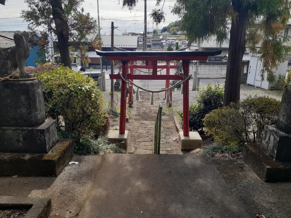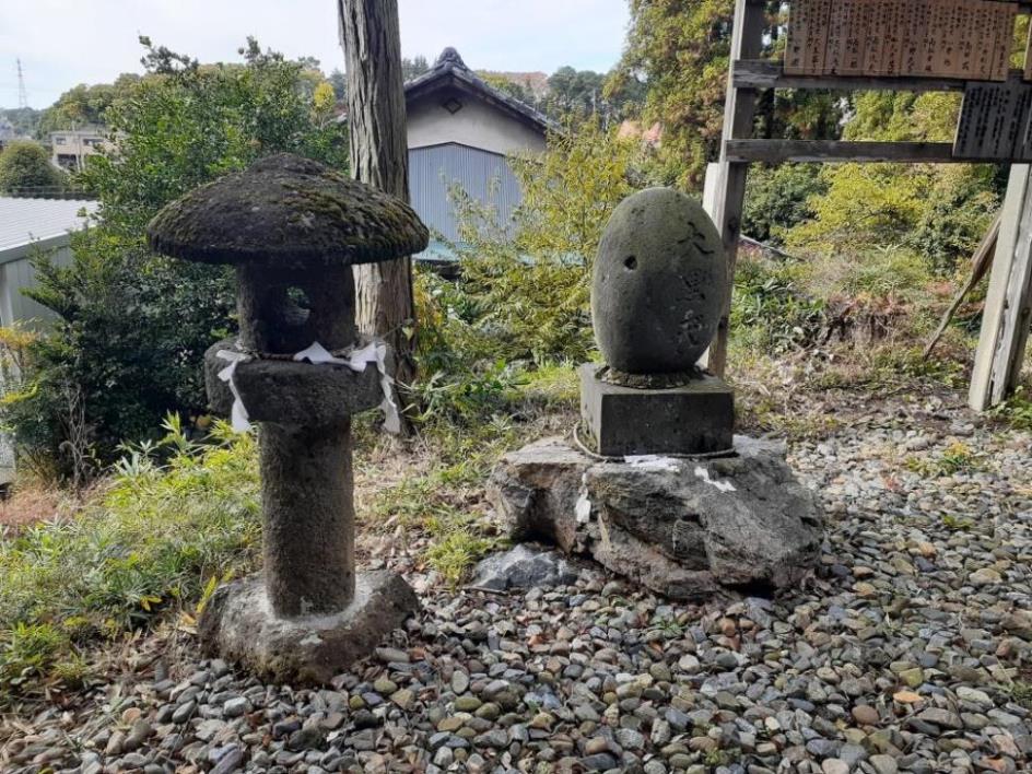 参道右手側に祀られている境内社・大玖(大杉)大神(写真左・右)