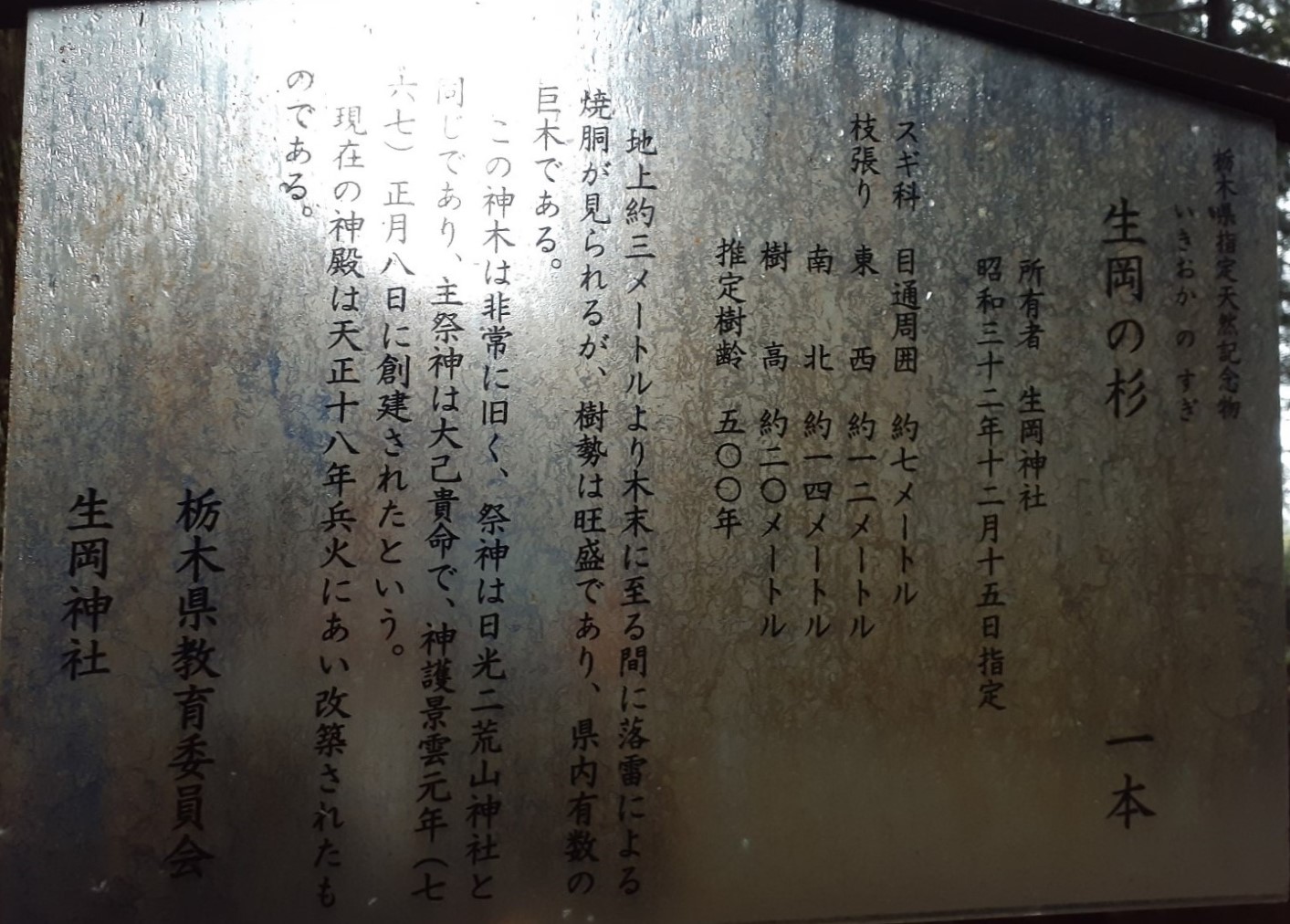 「栃木県指定天然記念物 生岡の杉」の案内板