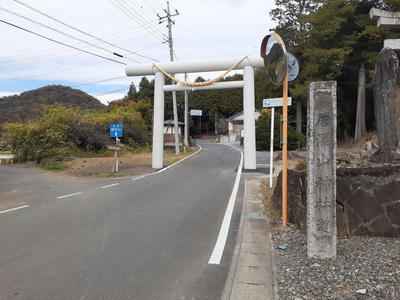 関東五社稲荷神社から一旦栃木県道141号唐沢山公園線に戻り1.6㎞程北上すると、「唐沢山神社道」と刻まれた社号標柱と石製の一の鳥居が見えてくる。因みにこの一の鳥居のすぐ右隣に露垂根神社が鎮座しているのだが、元々この社は天慶5年6月、藤原秀郷が唐沢山城築城に際し、同山頂にある「大炊の井」の守り神として安芸国厳島大明神を勧請したのが始まりとある。地形的に見ても、この一の鳥居がある場所は、平野部から山間部に移る入口という絶好な位置にあり、先に露垂根神社がこの場所に鎮座していて、後から唐澤山神社の一の鳥居もこの場所に置いたというのが事の真相なのではあるまいか。
