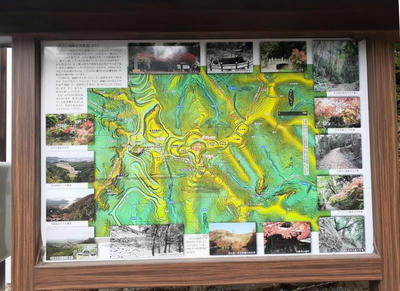 専用駐車場の近くにある沿革案内板 唐沢山城祉案内図も展示されている